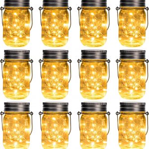 GIGALUMI Solar Mason Jar Lights, 12 Pack 30 Led String Fairy Lights Garden Lights Outdoor Waterproof Hanging Lanterns for Outdoor, Garden, Patio, Lawn, Balcony Decoration