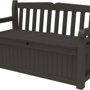 Keter Solana 70 Gallon Storage Bench Deck Box for Patio, Front Porch and Outdoor Seating Brown
