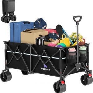 Large Beach Collapsible Wagon Cart with Wheels – Foldable Wagons 260L Heavy Duty 500lbs, Big Wheels