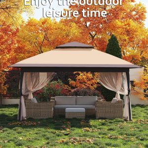 Pop Up Gazebo 12×12 Canopy Tent with Mosquito Netting, One Push Setup for Backyard Patio 4 Sand Bags