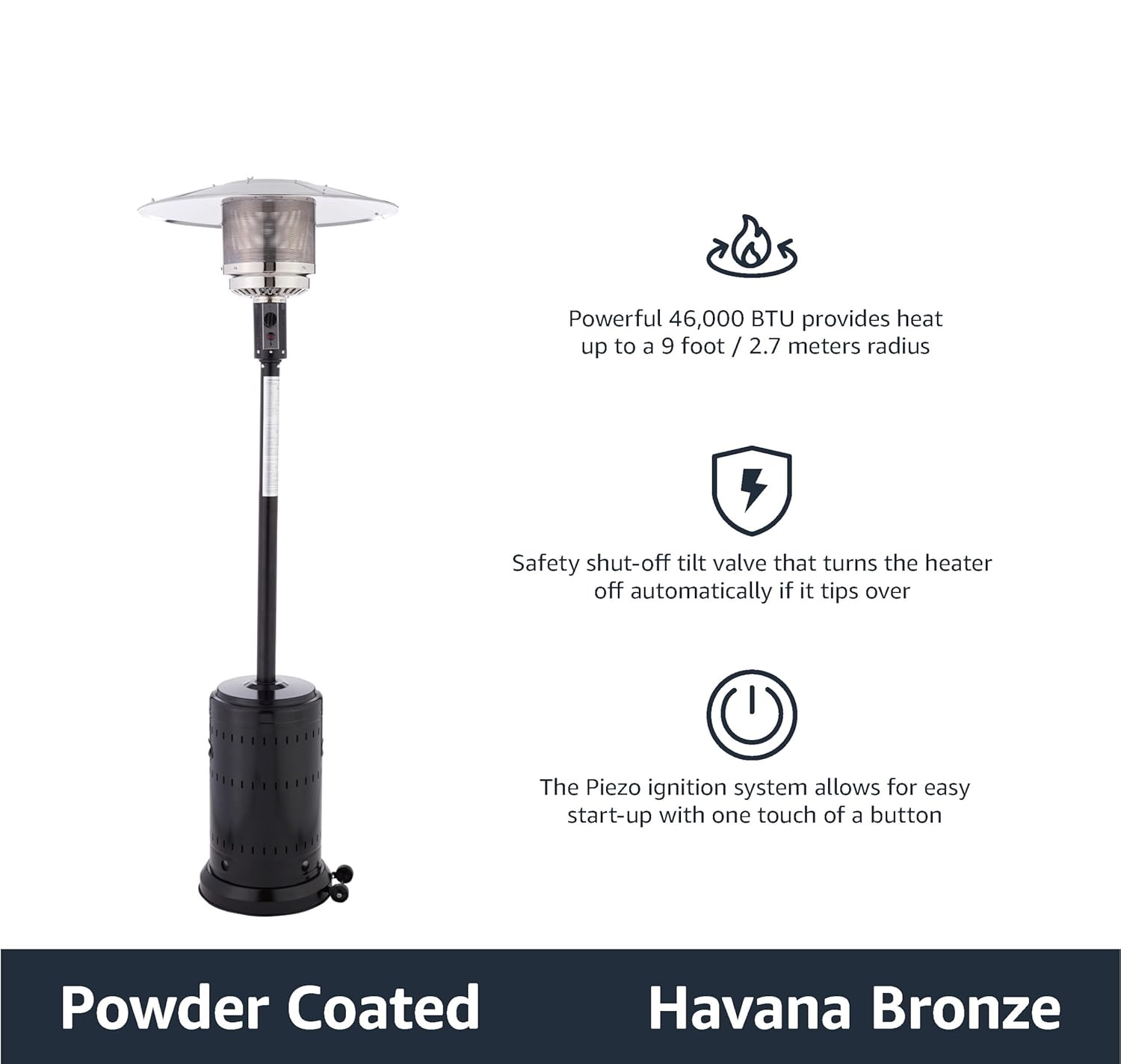 46,000 BTU Outdoor Propane Patio Heater with Wheels, Havana Bronze, with Water Tank, 32.1 x 32.1 x 91.3 inches (LxWxH)