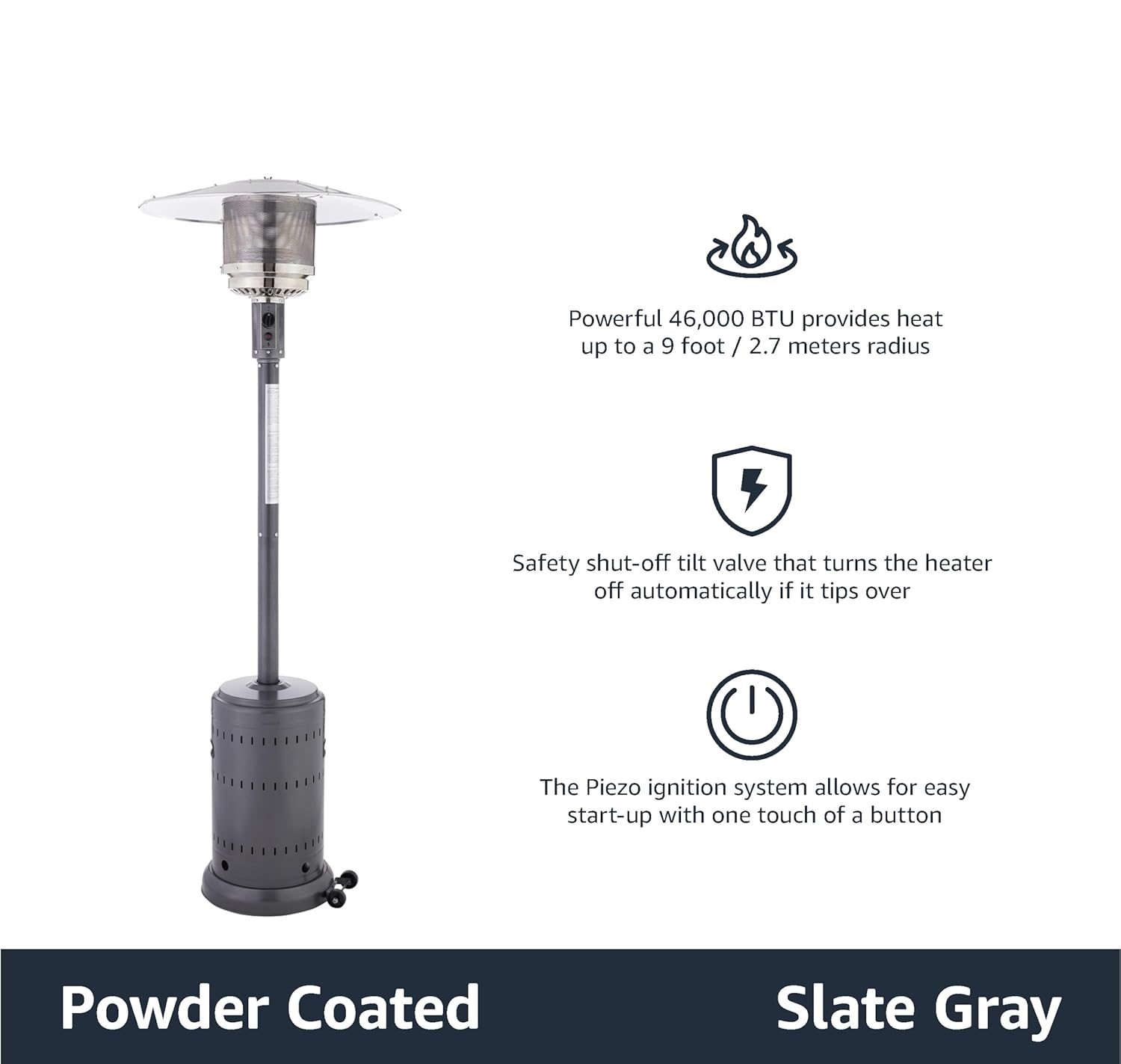 - DURABLE EXTERIOR & REQUIRES: Powder-coated finish in Slate Gray for lasting strength; 20 pound liquid propane gas tank to operate (not included)