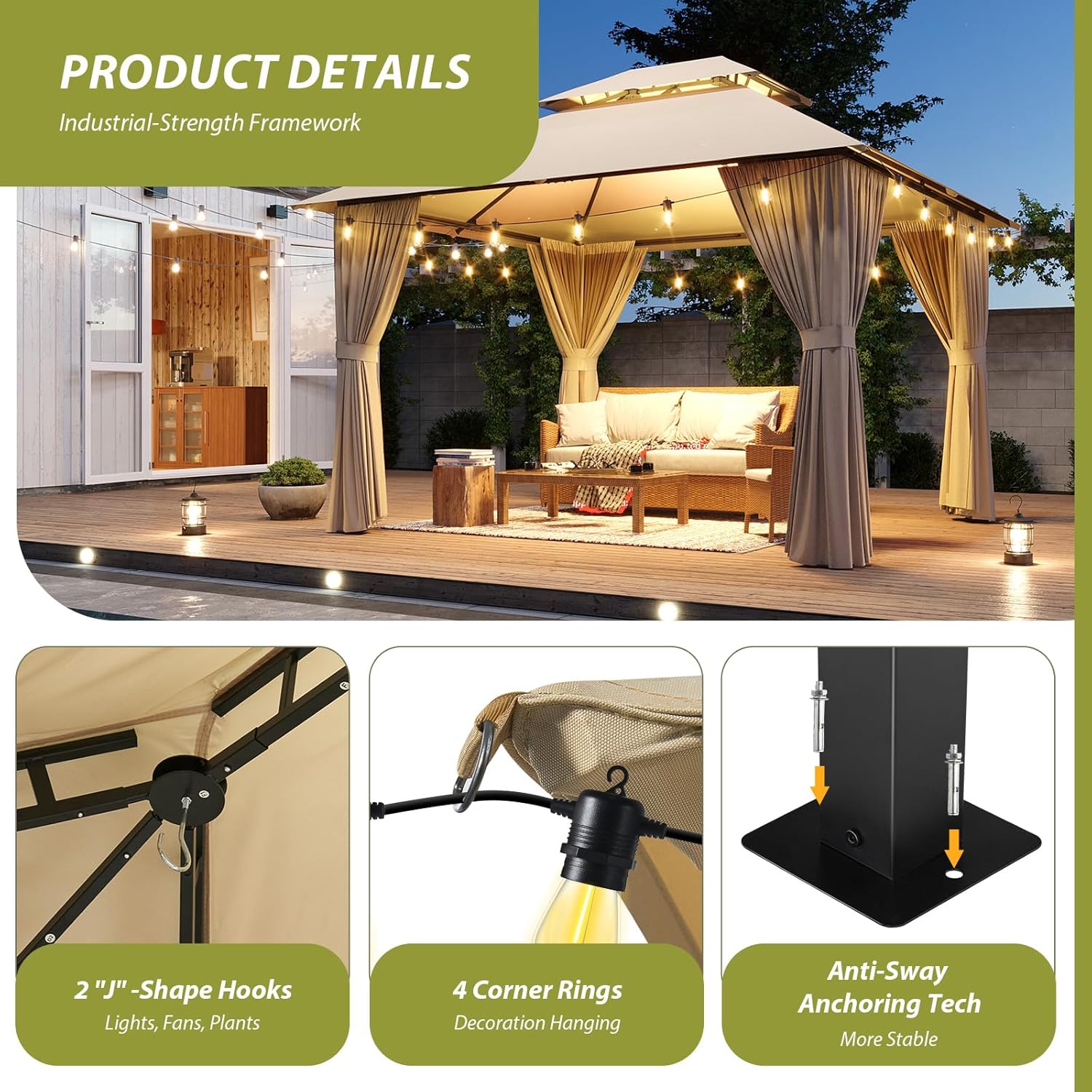 Aoxun 10’x12′ Outdoor Patio Gazebo, Heavy Duty Party Tent with Wind-Resistant Ropes