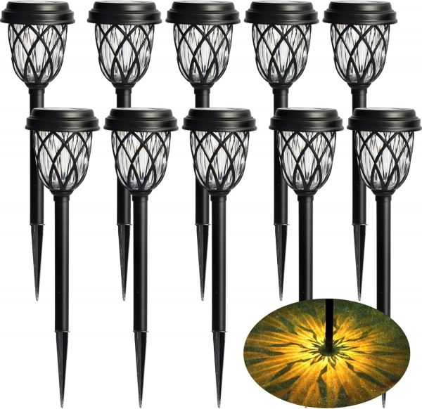 • Attractive Pattern: Our 10 pack outdoor warm white solar pathway lights are well designed. The compact black exterior and the transparent lid make the solar courtyard look more upscale and textured. The solar pathway light is 6 Lumen.