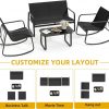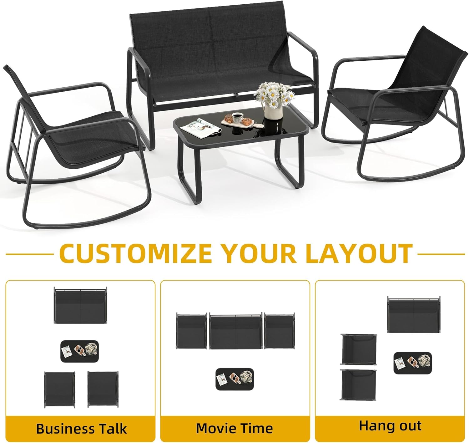 - Durable Tempered Glass Top: Add a touch of sophistication and practicality to your outdoor space with the tempered glass table included in our set. Known for its durability and ease of maintenance, the glass top can withstand high temperatures and is simple to clean. The adjustable leg feature allows for perfect placement, even on uneven ground, ensuring a level and steady setup every time.