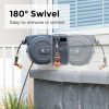- Easily Assemble and Dissemble: Assemble the hose reel on the wall with just the 180-degree rotation bracket and some screws. With the quick-release system, you can also easily lift on the handle to remove the reel for storage.
