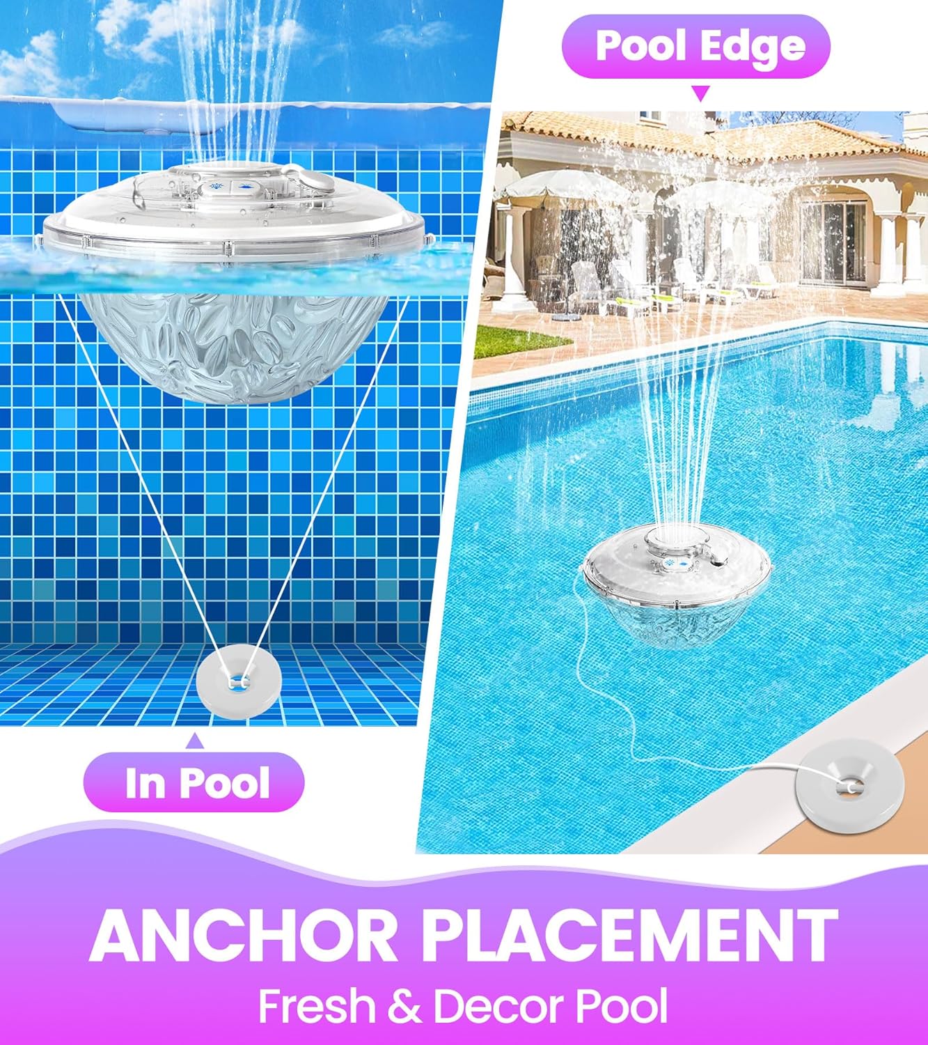 LanAqua-Rechargeable-Floating Pool Fountain with Lights Show, with Anchor, Pool Water Fountain, Swimming Pool Fountains for Inground/Above Ground Pond-White