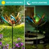 - 【Solar Powered Wind Spinners】Features a color changing LED crackle glass ball light which is powered by solar, two gorgeous color tiers blades, and a durable metal garden stake. As night falls, it flashes a soft, jewel-like light, bright metal and changing lighting create visual enjoyment in the garden.