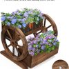 Wooden Wagon Planter Box, Garden Planter with Wheels, Indoor Outdoor Décor